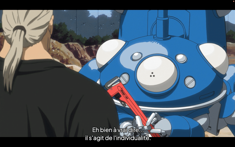 Ce processus d’éveil des Tachikomas trouve une résonance directe avec la philosophie de Gilbert Simondon, pour qui l’individu n’existe jamais comme une substance close, mais comme le résultat d’un devenir, d’un équilibre toujours instable entre un milieu collectif et une singularité en formation. Les Tachikomas ne naissent pas de la programmation, mais de la tension entre synchronisation et expérience propre. Leur mémoire partagée constitue ce que Simondon appellerait un champ préindividuel, un ensemble de potentialités encore indifférenciées ; leurs interactions, leurs divergences, leurs désobéissances forment autant de transductions qui actualisent ces potentiels et font émerger une conscience. Le “ghost” n’est donc pas une donnée initiale, mais une forme en genèse, un point d’équilibre toujours provisoire entre le collectif numérique et la subjectivité vécue. Autrement dit, Ghost in the Shell nous montrerait ce que Simondon appelait l’individuation technique : la naissance d’un sujet à travers la technique, et non contre elle.